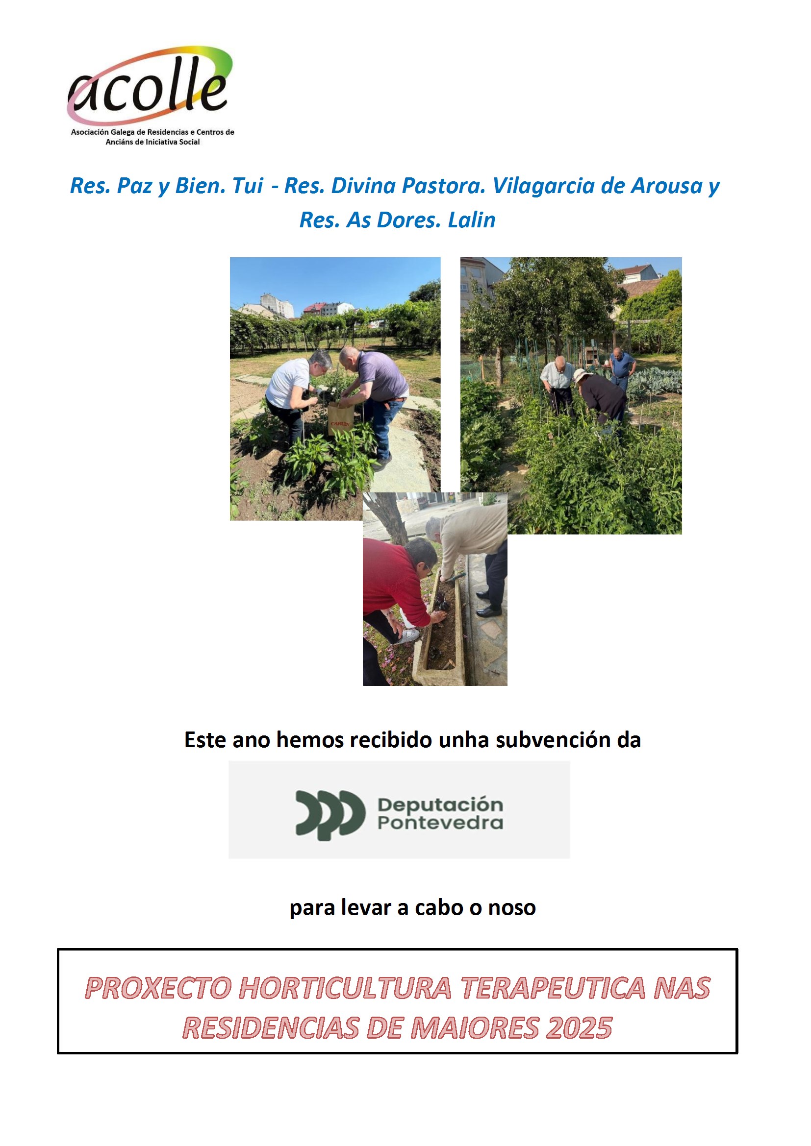 Proyecto HORTICULTURA TERAPEUTICA EN RESIDENCIAS llevado a cabo durante todo el año  2025 en las Residencias de la Provincia de Pontevedra de LALIN, TUI y VILAGARCIA DE AROUSA.
